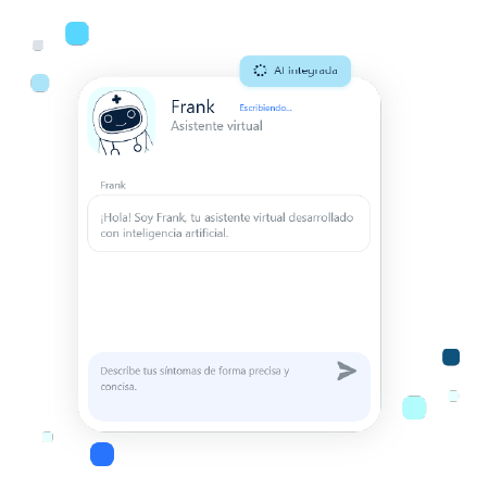 todosalud pone a tu disposición a Frank, el evaluador de síntomas con AI (Artificial Intelligence) para que puedas saber de manera oportuna que te sucede cuando sientas que algo no está bien con tu estado de salud.